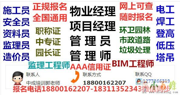 招生老师::郭老师报名热线:18800162207咨询QQ::1277366319资料员:报名费850元团报优惠试验员:报名费850元团报优惠测量员:报名费850元团报优惠机械员:报名费850元团报优...